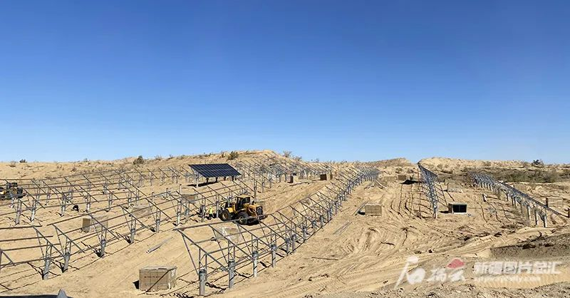 乌鲁木齐市米东区北部沙漠光伏基地项目建设现场(9月30日摄)。王磊摄