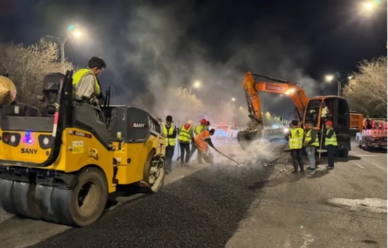 米东区百条道路4月底前“焕新” 夜间作业保畅通