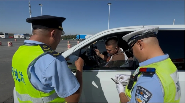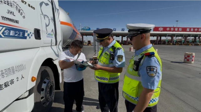 9月2日,在米东区北收费站联合检查点,执法人员有序引导车辆接受检查,逐一核查驾驶员从业资格证件、车辆安全设施配备及电子运单执行情况,确保运输过程规范。