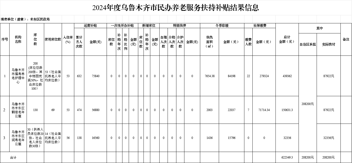 2024年度乌鲁木齐市民办养老服务扶持补贴结果信息