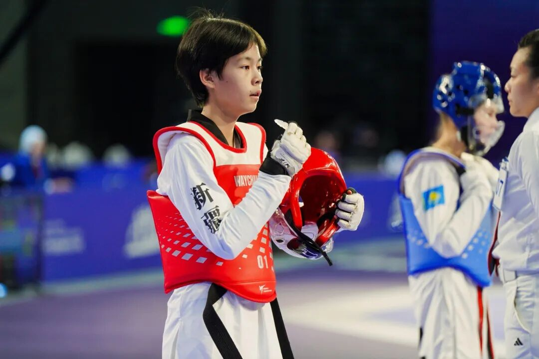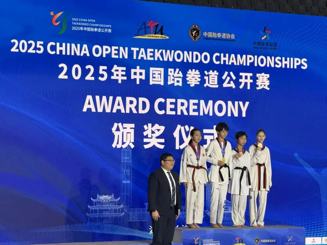 (米东区融媒体中心记者:蔡玉姣 单润泽报道)11月29日,2025年中国跆拳道公开赛在湖南贺龙体育馆落幕。在少年组女子44公斤级决赛中,市第128中学学生马小丽摘得金牌。