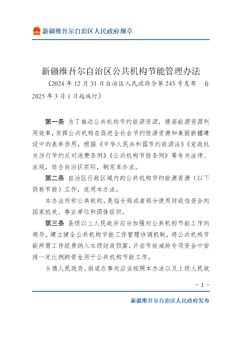 新疆维吾尔自治区 公共 机构 节能 管理办法