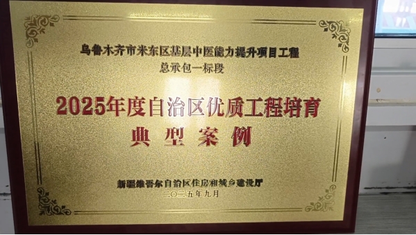(米东区融媒体中心记者:肖鹏报道)10月17日,记者从米东区建设局获悉,由中建三局承建的米东区基层中医能力提升项目工程总承包一标段,荣获自治区住房和城乡建设厅授予的“2025年度自治区优质工程培育典型案例”称号,成为全疆工程质量与管理创新的标杆项目之一。